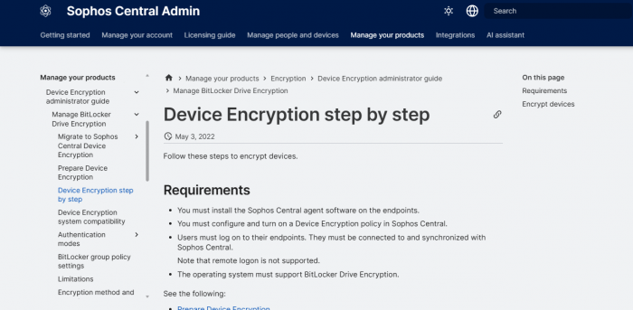 Sophos Central Device Encryption is a full‑disk encryption solution integrated into the Sophos Central security platform. It’s designed for businesses that want strong encryption with centralized management across multiple devices.