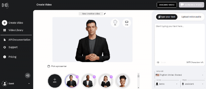 D‑ID is brutally simple to operate. You bring a portrait (photo, AI art, character), paste text, pick a voice, and a couple of minutes later you’ve got a talking clip. For rapid prototypes, website hero sections, “talking head” explainers on landing pages, or interactive chatbot fronts, that quick turnaround is gold. I even wired one D‑ID avatar into a chatbot interface: text goes in, the avatar “speaks” the answer. People interacted longer simply because there was a face.
