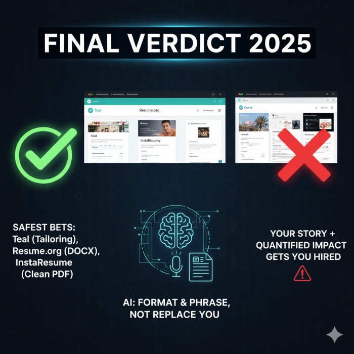 Instead ask: “Which builder gives me control, transparency, and a résumé that survives the algorithm—and still sounds like me?”