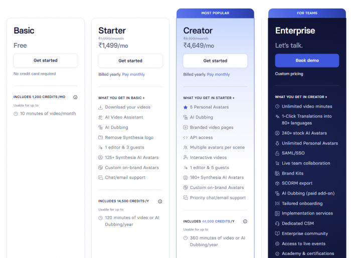 Starting price: Individual plans typically start around the lower mid-tier SaaS bracket per month for a set number of video minutes, with custom pricing for larger teams and enterprises.