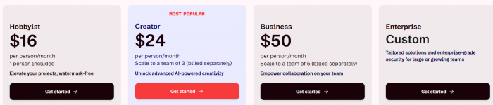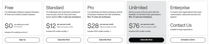 Starting price: Runway typically offers a free or trial tier with generation limits, and paid plans starting in the lower-to-mid subscription range per month depending on credits and features.