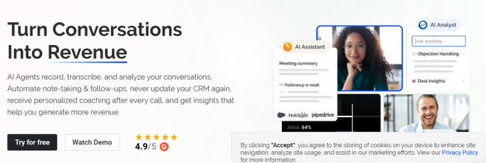 The system analyzes conversations and provides instant feedback, identifying objection patterns, talk-time imbalances, missed opportunities, and recommended next steps.