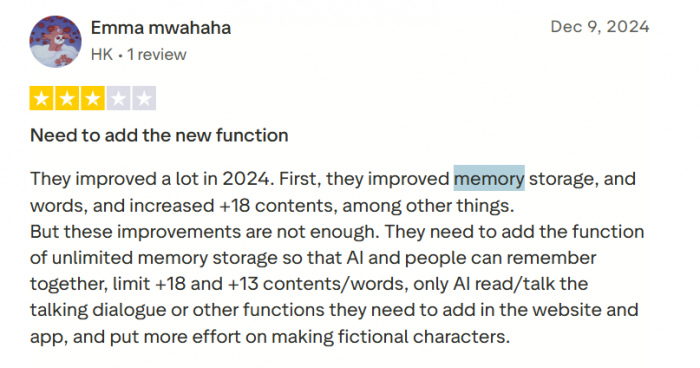 ● Recent improvements to memory and voice: Some newer reviews mention that the bots’ memory has improved compared to before and highlight voice features as “amazing,” showing that a subset of users notices product progress.
