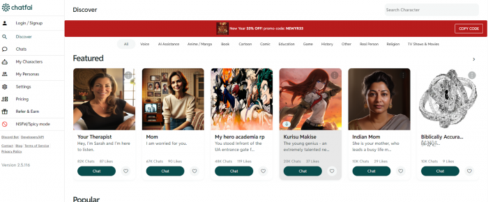In practice, you sometimes feel like you’ve walked into a very large bookstore where the shelves were arranged by someone’s vibes rather than a librarian. Search works, but it is not the star. Users regularly praise the variety and complain about finding their own characters once they’ve created a lot of them.