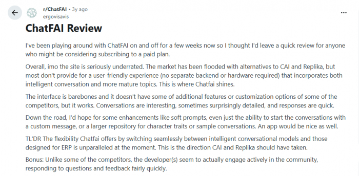 User sentiment around ChatFAI is rarely lukewarm; it leans toward strong opinions on both ends.