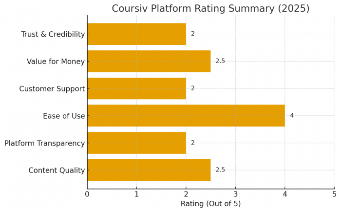 Based on a wide body of real reviews, the answer seems to be: Coursiv is a questionable platform at best, and a misleading product at worst. While technically not an outright scam (users do receive content), the overwhelming majority of reviews suggest that the value doesn’t match the promise, and the platform’s business practices are troubling.