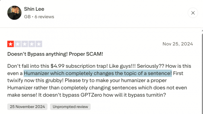 ● Trustpilot contains harsh one‑star reviews calling it an “absolute scam,” complaining about “very poor quality” humanized content that “didn’t make sense” and alleging that promised refunds never materialized.