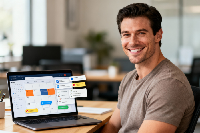 Calendar auto‑blocks commute, lunch, and focus time so meetings don’t eat the whole day.