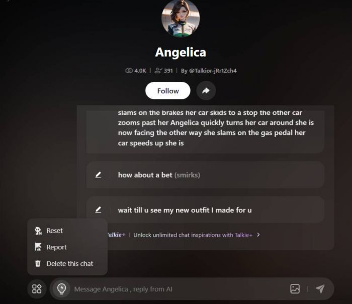 This is important because roleplay systems can easily spiral into repetitive loops. Having the ability to reset or refine conversations helps maintain some level of freshness.