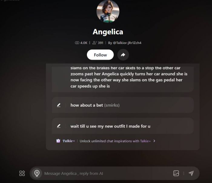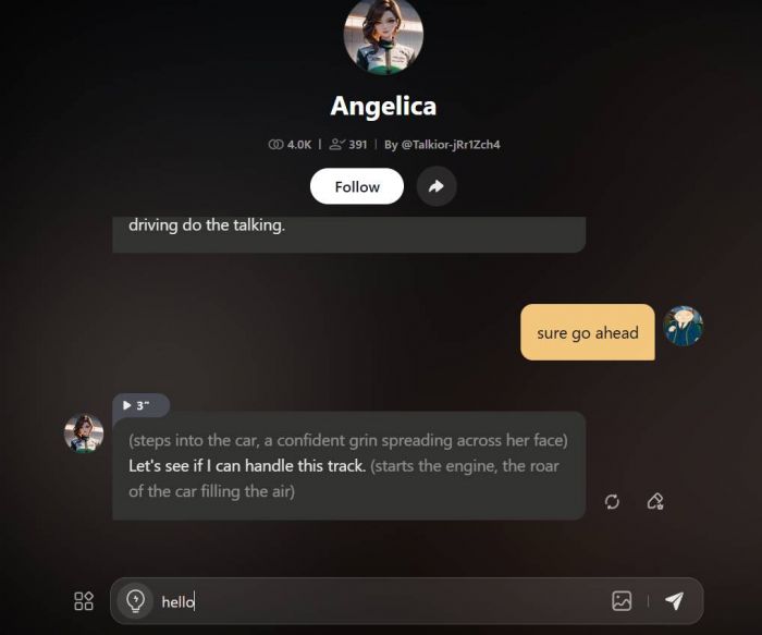 Once inside, the experience shifts immediately. You are not talking to a generic bot. You are dropped into roleplay-based conversations. In my case, it started with a racer girlfriend scenario. Yes, that is as specific as it sounds. And yes, it actually works better than you expect.