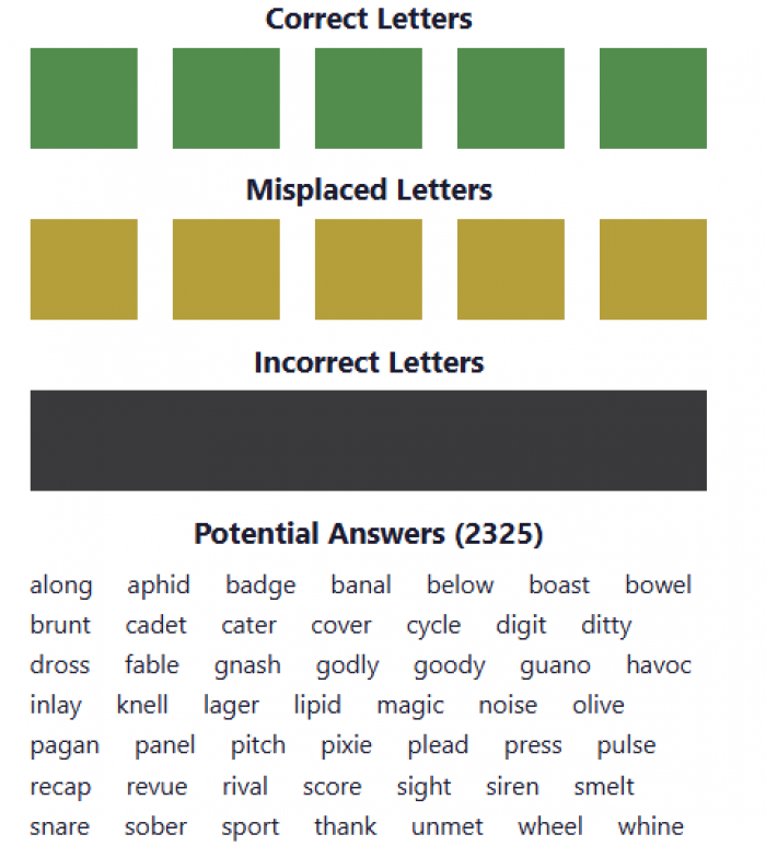 It lets you enter the letters you’ve guessed, green, yellow, and gray, to narrow down possible words instantly.