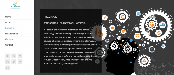 On the clinical side, HINAI Web offers a multimedia Electronic Medical Record as its core, integrating information from labs, radiology, pharmacy, and devices.