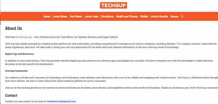 TechGup.org does include an About Us section, but the information provided is generic.