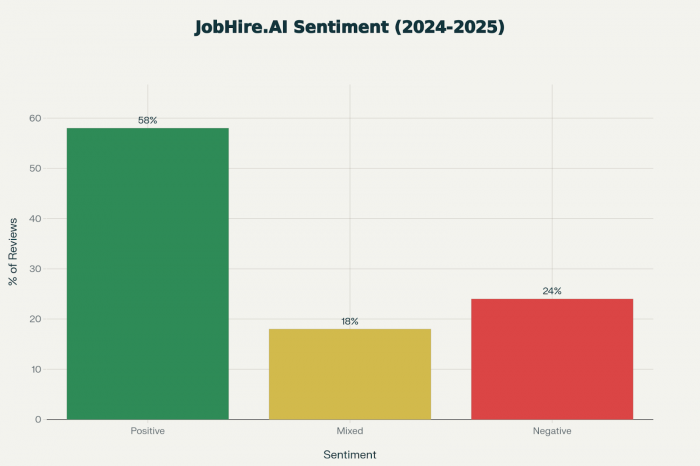 This pattern appears in the JobHire.AI Overall Sentiment Split (Approximate, 2024–2025) bar chart, where the positive bar is clearly highest, but the negative portion is large enough that you cannot dismiss the risks.