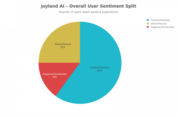 ● Across sources that quantify feedback, a reasonable approximation is that a clear majority of users are positive or satisfied, a smaller but significant group is mixed, and a minority is strongly negative due mainly to pricing, memory, and repetition.