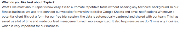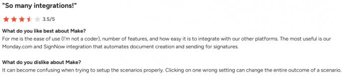 On G2, Zapier holds 4.5 stars from over 1,520 reviews. Make holds 4.6 stars from 264 reviews. The smaller review volume for Make reflects its more technical, narrower audience rather than lower quality.