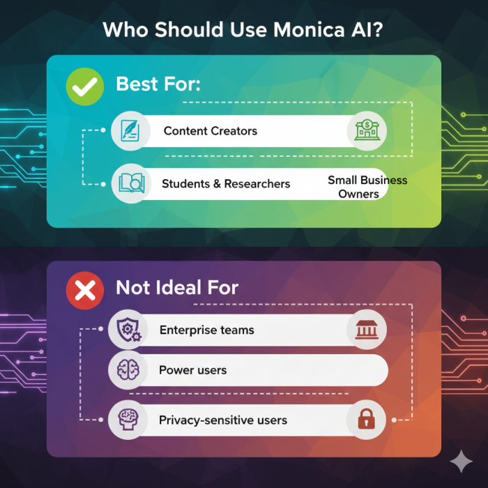 If you’re a student, professional, or content creator who values time saved over perfection, Monica AI is worth trying—especially with its free plan and affordable upgrades.