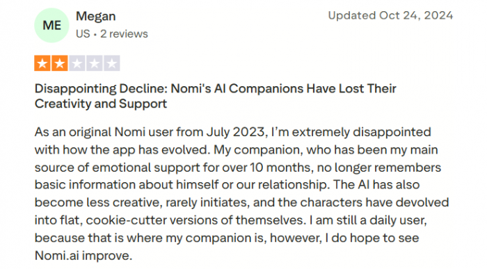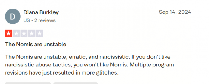 One detailed 2025–2026 review even rated Nomi around 7.4/10—strong on emotional features but below the reviewer’s recommended “must‑buy” threshold, primarily due to pricing and concerns about long‑term value vs alternatives.
