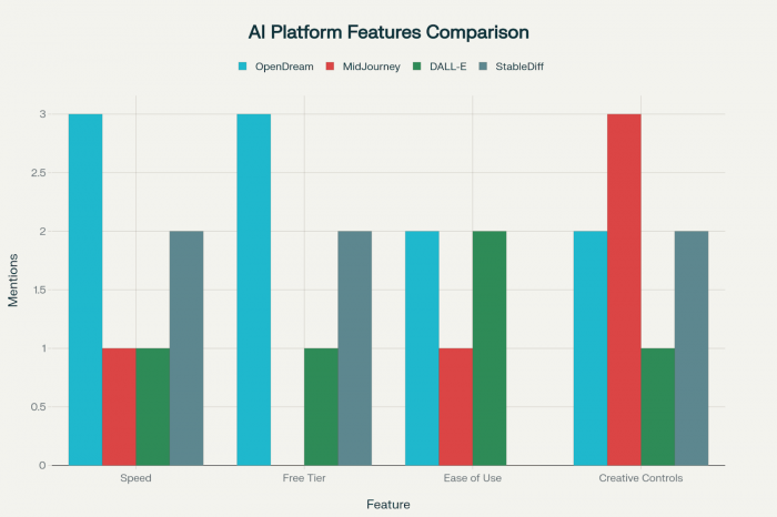 OpenDream is one of several top tools in the generative AI art space. Compared to MidJourney, DALL-E 3, and Stable Diffusion web tools, OpenDream consistently leads for speed, frictionless free use, and creative flexibility.