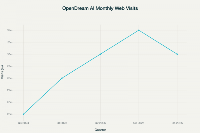 OpenDream’s unique blend of frictionless workflow and generous free tier has driven rapid global adoption, topping 30 million monthly visits at its peak in 2025. Despite some controversy and tighter moderation in late 2025, growth remains resilient.