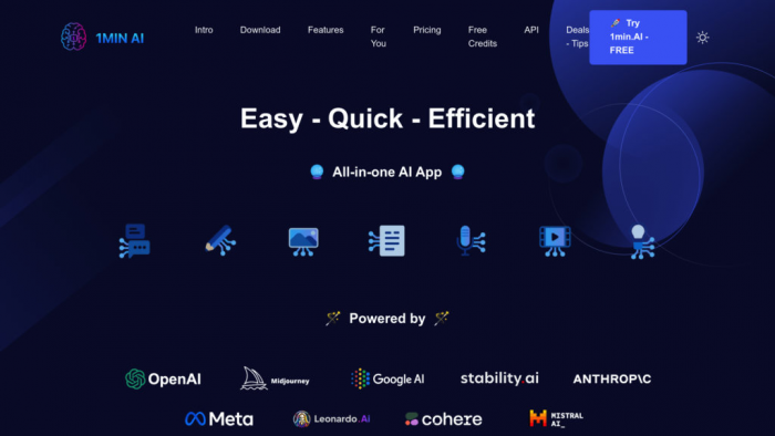 The core promise of 1min.AI is speed: you feed it a script or a topic, pick a style, and the tool assembles a complete short video using AI. That includes choosing visuals, transitions, and pacing, so you don’t spend ages fiddling with a timeline.