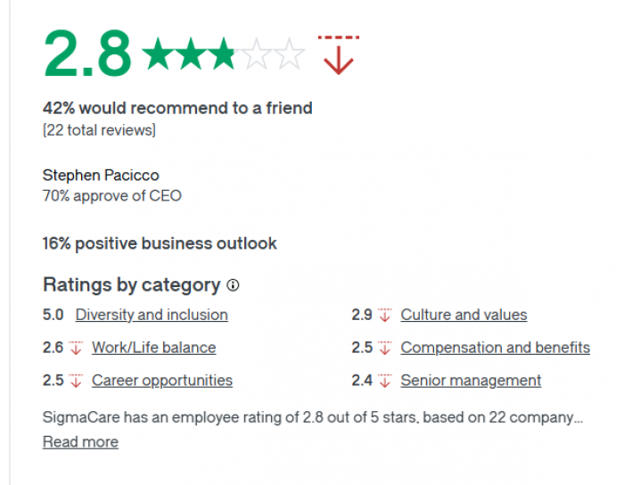 Among software users, SigmaCare is generally well-regarded for usability and medication workflows. Employee reviews are more mixed, particularly after the 2017 acquisition.