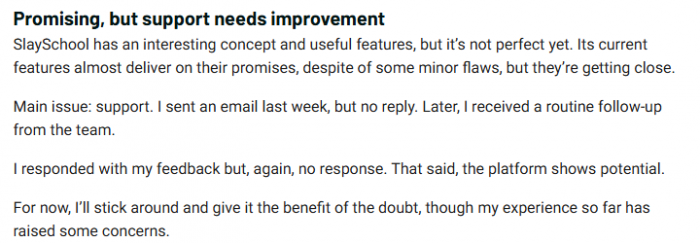 Taken together, real user feedback paints a similar picture to my experience. SlaySchool works best as a fast assistant that prepares your learning material, not as a tool you blindly trust for every card and every question. If you are willing to review and tweak what it generates, most users seem to feel they get more time back than they spend fixing small issues.