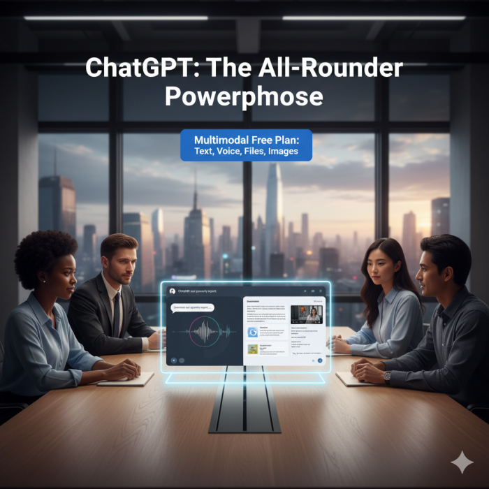 Unique Edge: A truly multimodal free plan—chat with text, voice, files, and even images.