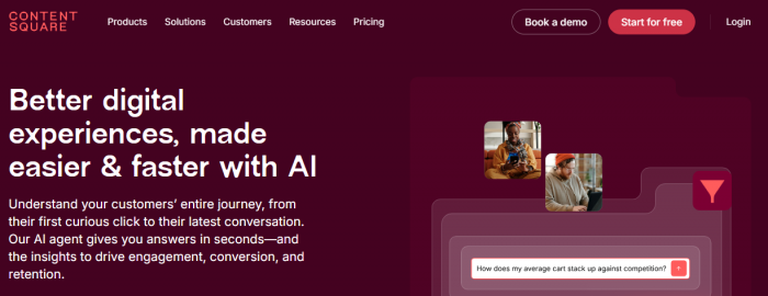 Contentsquare integrates behavioral analytics with user feedback. Formerly Hotjar, it now combines heatmaps, session recordings, and surveys with AI-driven insights.