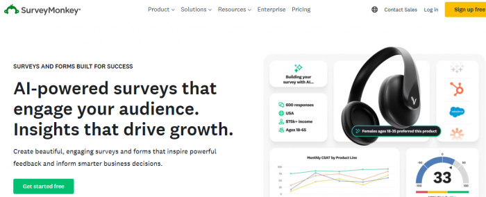 SurveyMonkey is a classic tool for collecting quantitative and qualitative feedback. It’s versatile, AI-enhanced, and integrates with hundreds of apps.