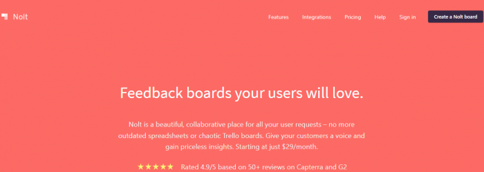 Nolt is a lightweight, fast feedback board for collecting ideas, votes, and suggestions.