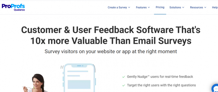 Qualaroo uses on-site Nudges™ to collect feedback while users are actively engaged. AI-powered sentiment analysis helps teams quickly uncover insights.