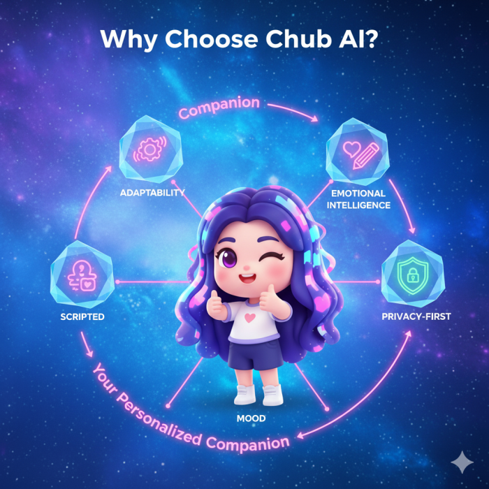 Reality: Chub AI’s adaptive learning system allows its personality to shift over time, adjusting based on how you interact with it. It can learn preferences, adapt to humor, and even adjust its emotional responses to align better with your style. It’s a dynamic experience, rather than a static one.