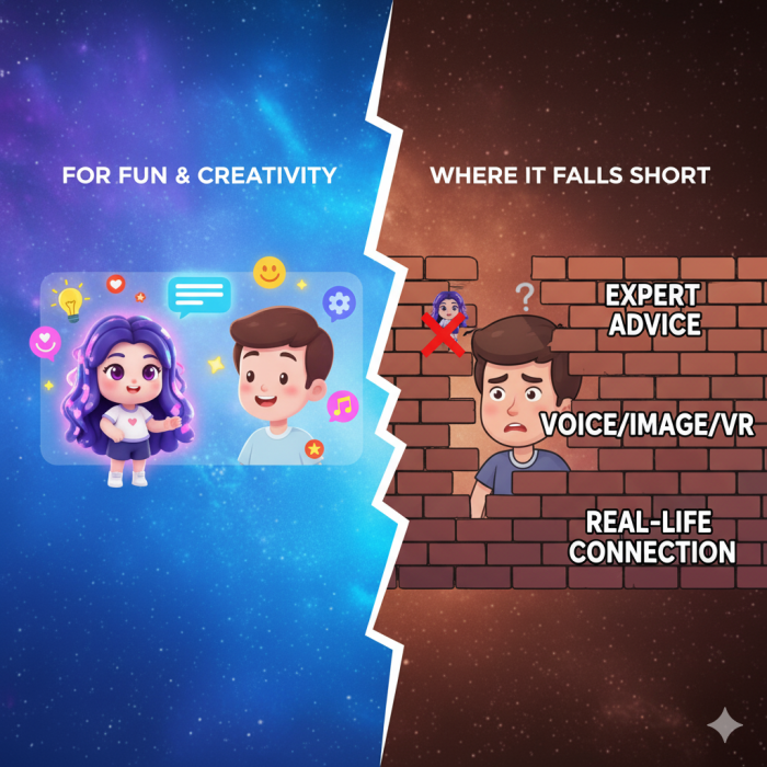 Reality: Chub AI isn’t limited to fun interactions. It can be used for personal coaching, self-reflection, or productivity. It helps users with emotional growth, brainstorming, and even role-playing scenarios, creating an experience that serves a variety of purposes beyond entertainment.