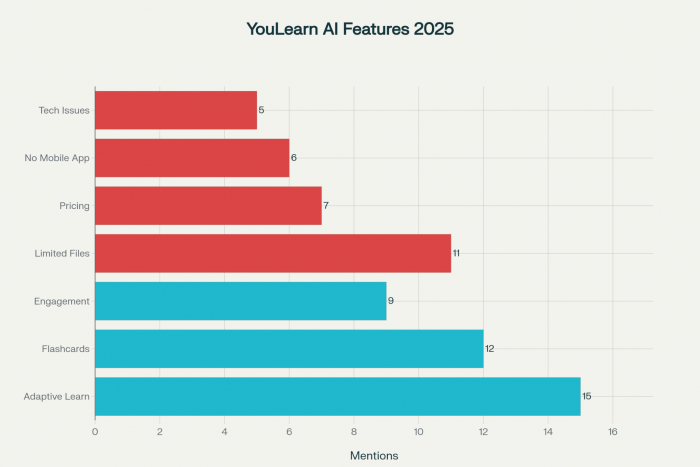 YouLearn AI has quickly become a top AI-powered study platform, finding its niche through adaptive learning, a unique voice-based tutor, and efficient flashcard/note automation. Its strengths shine for students seeking tailored pathways, while its primary drawbacks are limited file support, lack of a mobile app, and a price point that not everyone finds affordable. Positive sentiment (68%) clearly dominates in recent reviews, yet real user frustrations are worth noting—especially for busy or mobile-first learners.
