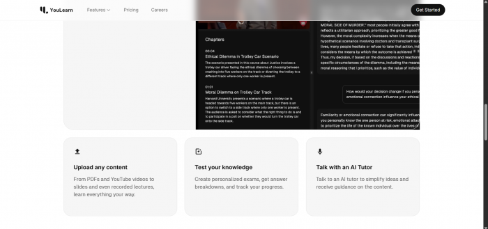 In short , YouLearn AI is best for learners who want adaptive, efficient, and voice-friendly tools for organizing large amounts of educational material—especially if working with PDFs, YouTube lectures, and recorded audio. It isn’t ideal for those needing deep visual or creative learning tools, wide file format support, or always-on mobile access. On value for money, it shines for serious learners committed to regular use, but less so for casual or price-sensitive users.