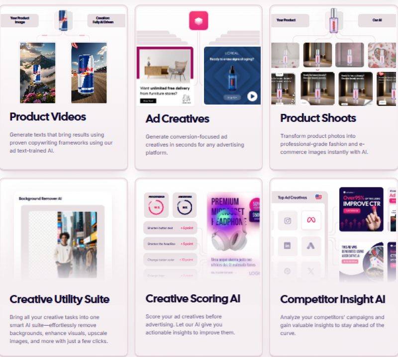 AdCreative.ai is an AI-powered advertising platform that helps businesses generate high-performing ad creatives in seconds. It focuses on producing conversion-optimized visuals and copy for digital ads across multiple platforms.
