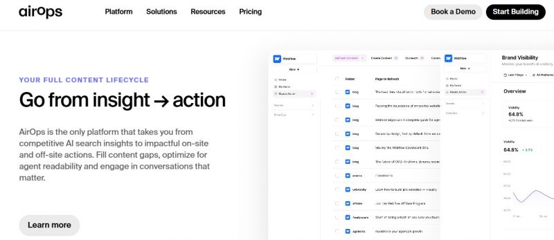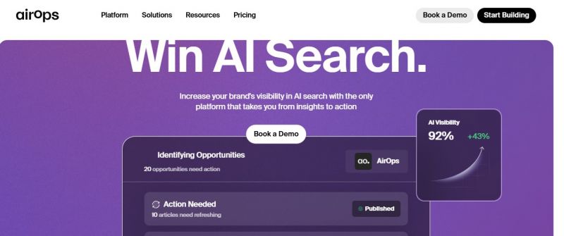 AirOps is a cutting-edge AI platform that transforms how brands optimize and execute their search strategies. Designed for SEO and content teams, AirOps enables data-backed insights, automates gap filling, and streamlines high-impact actions from audits to publication. It is unique in turning strategy into measurable results while elevating both on-site and off-site visibility.
