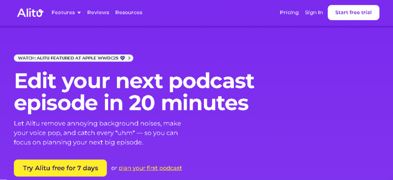 Alitu is a web-based podcast production platform that helps creators streamline the recording, editing, and publishing process. It automatically cleans audio, levels volumes, removes background noise, and allows users to combine segments into a complete episode. Alitu also provides built-in music and jingles, making it easier to create professional-quality podcasts without extensive technical knowledge. The platform is designed for independent podcasters, small teams, and content creators who want to focus on storytelling rather than complicated audio editing workflows.