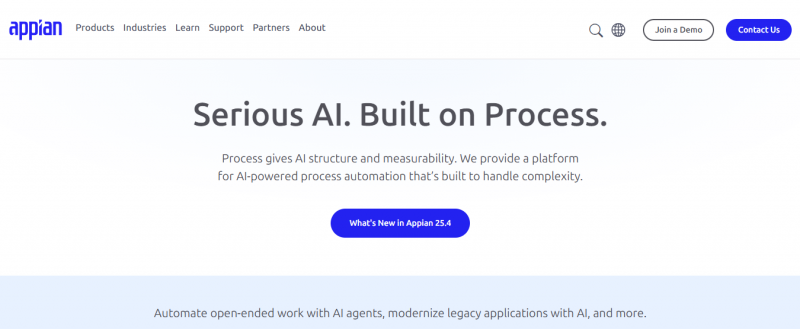 Appian provides a platform for process orchestration, automation, and intelligence. It connects workflows, unifies data across systems with a data fabric, and integrates workflow, RPA, AI, IDP, and APIs to automate end-to-end processes. Organizations design processes using process models, low-code tools, and data fabric. They automate tasks with built-in AI and robotic process automation. Process intelligence with mining and AI recommendations supports continuous improvement. AI capabilities include AI Skills for training models and building prompts, and AI Copilot for developers and business users. The platform handles over 6 billion daily transactions across 63 availability zones.