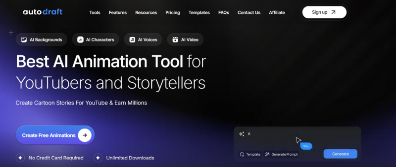 AutoDraft AI lets users turn ideas into polished 2D animated content using simple text prompts and browser‑based tools. At its core, the platform blends animation generation, character design, and audio synthesis into one workflow. It targets YouTubers, social media creators, educators, and small teams needing professional‑looking visuals quickly.
