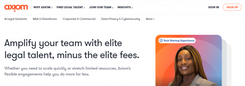 Axiom connects businesses with on-demand legal professionals. It targets in-house legal teams facing rising law firm fees and resource constraints. At its core, Axiom enables flexible engagement models backed by a global talent network of 14,000+ professionals. Organizations can scale legal capacity as needed while maintaining cost predictability, with pricing typically based on hourly or project structures and savings reaching up to 50% compared to traditional firms.