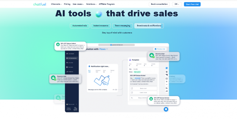 Chatfuel is a no‑code AI chatbot platform that helps businesses automate customer communication, lead generation, sales, and support across messaging channels like Facebook Messenger, Instagram, and WhatsApp. It combines intuitive visual flow building with AI‑driven responses and integrations, allowing marketers and support teams to launch bots without technical skills. Chatfuel is designed for small to medium businesses and agencies that want to automate conversations, qualify leads, schedule bookings, and handle common queries 24/7. The platform emphasizes simple setup, Meta ecosystem integration, and scalable automation to boost engagement and conversions.