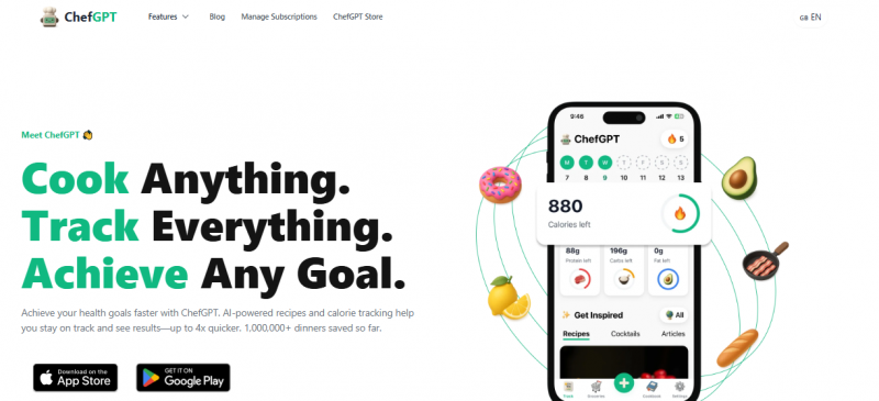 ChefGPT generates recipes and meal plans from user-input ingredients, preferences, and goals. It detects meal ingredients from photos to estimate nutrition and log calories. Users snap a photo of a meal for instant tracking, list ingredients for one-tap recipes, or receive weekly meal plans with shopping lists. Modes include PantryChef for recipes from available items, MasterChef for variations based on servings, time, skill level, and dietary needs like vegan or keto, MacrosChef for macronutrient targets, and MealPlanChef for customized plans. PairPerfect suggests wine or beer pairings.