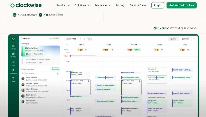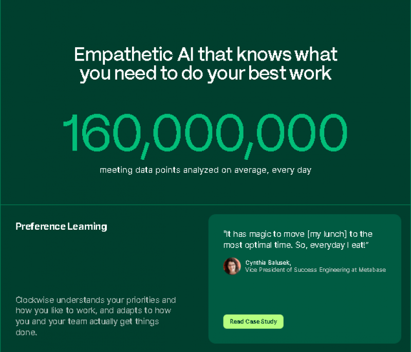 Clockwise reduces the cognitive load of calendar management, supports healthier meeting practices by limiting context switching, and enables teams to allocate time for deep work. It also eases meeting coordination with external stakeholders through intelligent scheduling links.