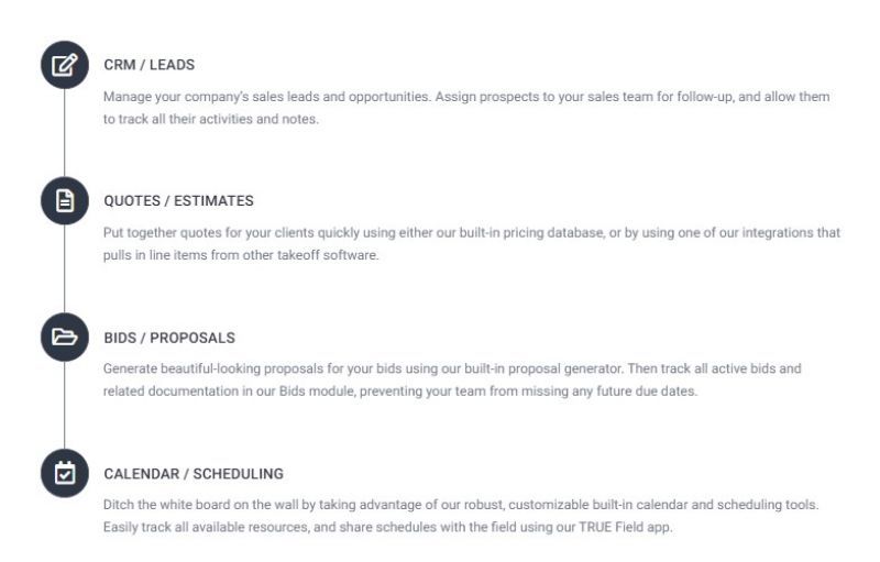 TRUE is a cloud-based construction management solution designed for subcontractors. It bridges office and field operations, providing a unified digital workspace where project managers, field crews, estimators, and company leadership can collaborate seamlessly in real time. The software's unique qualities include its deep customization, direct integration with accounting suites, mobile-first field features, and practical approach to simplifying complex construction workflows.