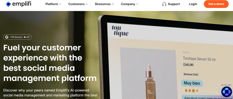 Emplifi provides a unified platform for social media management, customer engagement, and marketing across digital channels. It targets teams of any size, from small groups to enterprises with 1,000 users, connecting marketing, commerce, and care workflows. The platform stands out with AI-powered insights, scalability for distributed teams, and recognition as a Leader in The Forrester Wave™ for innovative social solutions that boost efficiency and revenue.