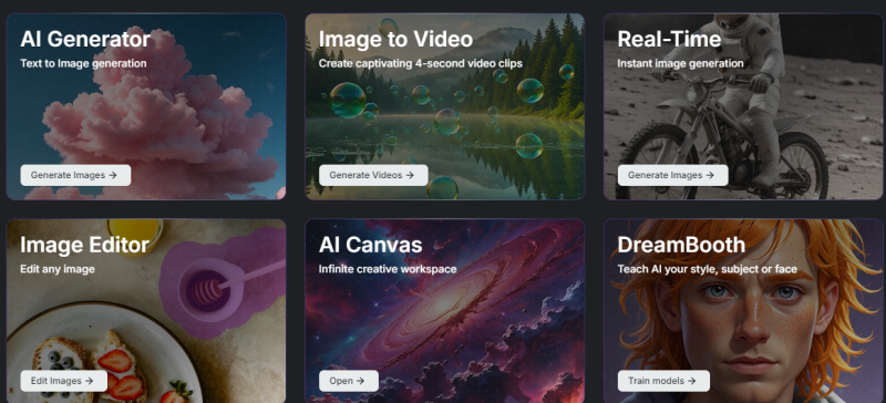 Wide range of tools for generating and editing images and videos.