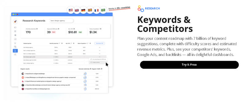 Combines keyword research, competitor analysis, and SEO insights in one platform.