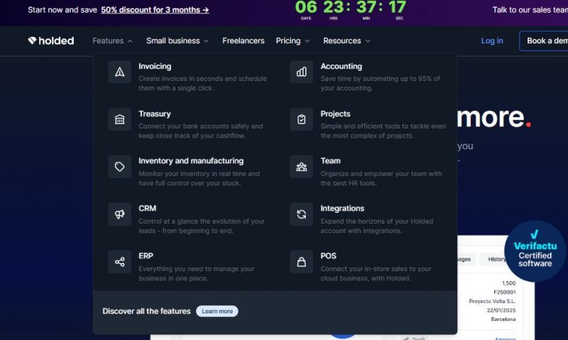 Holded is an intuitive business management platform designed for small and medium-sized enterprises (SMEs). It centralizes invoicing, accounting, banking, and automation, offering smart tools that simplify everyday administration. Holded’s main strengths are its ease of use, automation features, and deep compliance for Spanish legal requirements.